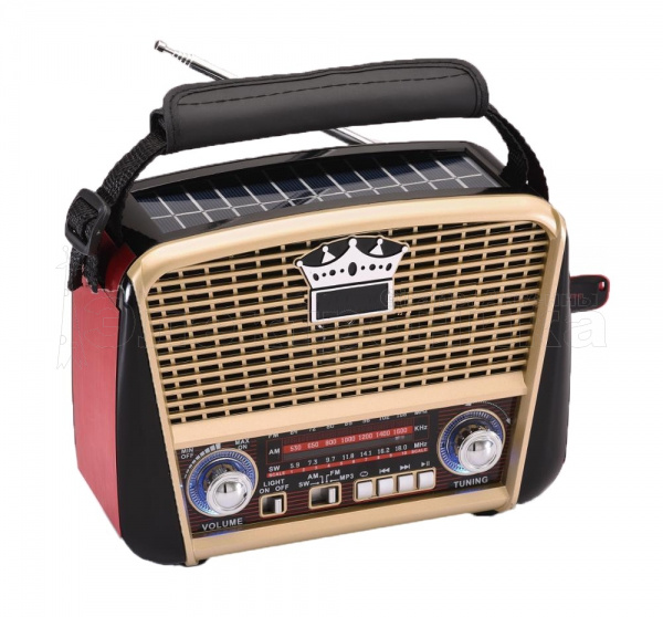 FM: 88-108 MHz AM: 530-1600 KHz SW: 5.9-18.0 MHz Разъёмы: USB/ TF до 32Гб Питание: аккумулятор встроенный / 2*R20 - в комплект не входят / 220V шнур в комплекте Зарядка через гнездо 5.5мм (4.5V) или от солнечной батареи Размер: 21 х 14.5 х 8 см