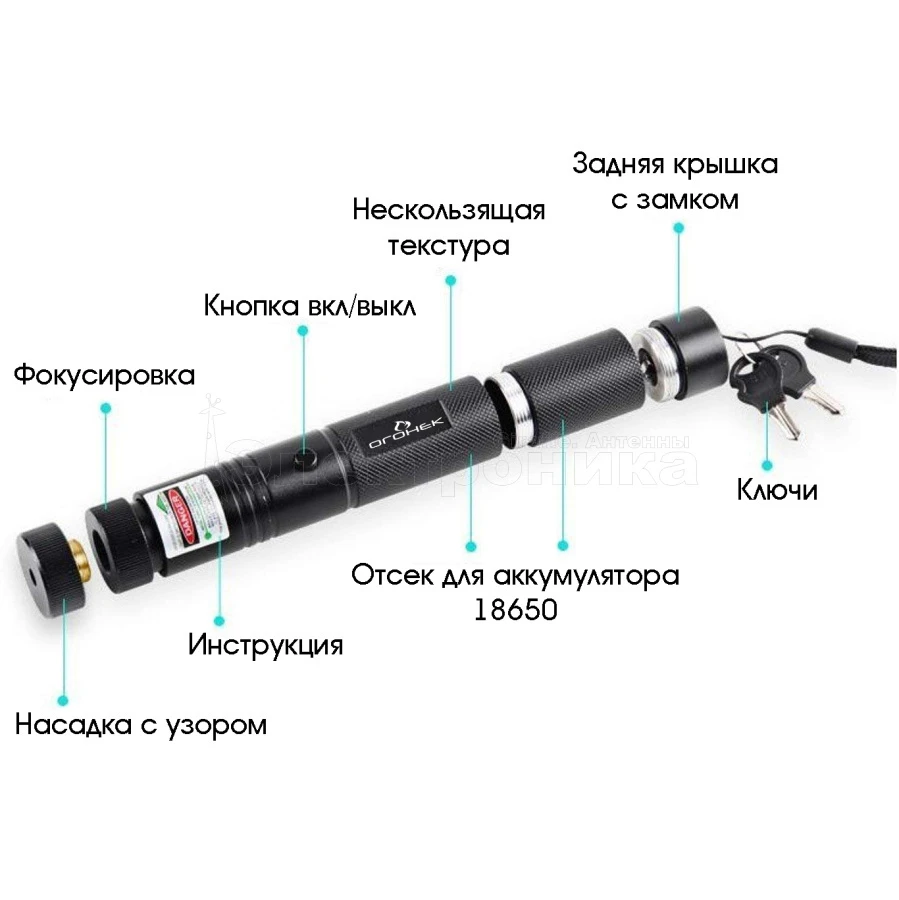 Питание - 1*18650 (в комплекте)